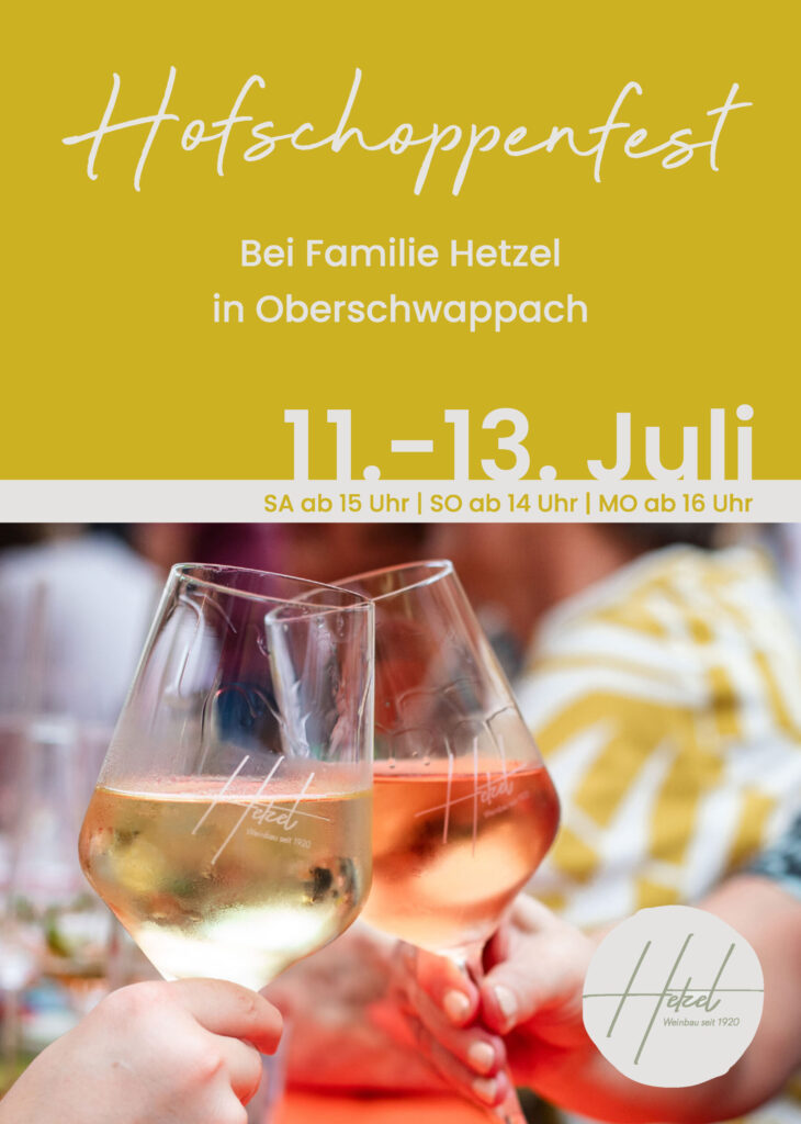 Am deutlichsten zeigt sich dies bei unserem zünftigen Hofschoppenfest. Fränkische kulinarische Köstlichkeiten mit erfrischendem Wein unter freiem Himmel in uriger Geselligkeit zu genießen, ist ein unübertroffener Genuss für Leib und Seele. Mit musikalischer Begleitung wird bis in die Nacht hinein gefeiert, gelacht und die laue Sommernacht genossen. Kann etwas noch gesünder sein für Jung und Alt, als Freunde, frische Luft und guter Wein? Probieren Sie es doch selbst einmal aus. Wir freuen uns, sie stets im Juli zu unserem Hofschoppenfest begrüßen zu dürfen.